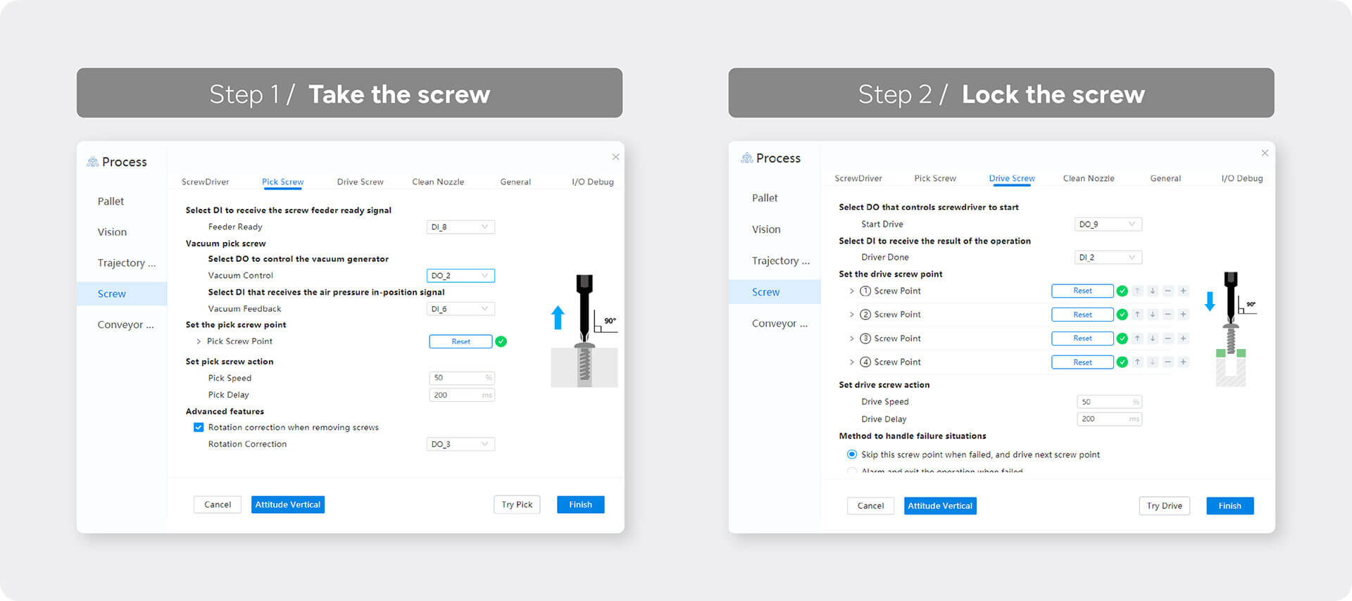 La solución no requiere conocimientos de programación. Los ingenieros de robots solo tienen que configurar los parámetros y puntos correspondientes en cada paso, y el proceso se generará con un solo clic, simplificando enormemente la depuración.
